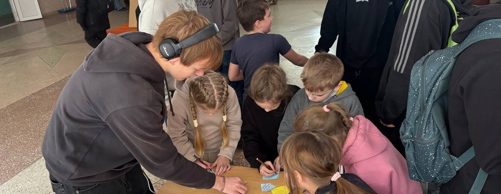 Молодша ланка (3–6 класи): Стали справжніми художниками! Попри тривоги, у вестибюлі з’являються малюнки для наших захисників. Кожне «Дякуємо» та «Чекаємо» ми передамо на фронт — нехай наші прапори гріють воїнів за обрієм.
