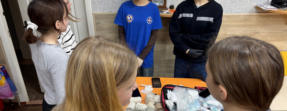 Сьогодні для наших учнів відбулося практичне заняття з надання першої домедичної допомоги. Діти вчилися визначати стан потерпілого, виконувати непрямий масаж серця, правильно накладати турнікет і пов’язки — адже знання й упевнені дії у критичній ситуації можуть врятувати життя!